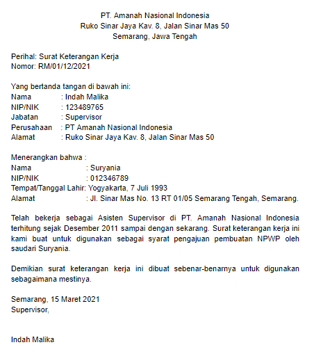 Meminta izin lisan untuk tidak masuk kerja tentu saja tidak cukup, karyawan harus memberikan surat izin tidak masuk kerja pada atasan atau hrd . Contoh surat izin tidak hadir kerja. Jadi surat ini menjadi bukti bahwa kamu memiliki pengalaman kerja, sehingga menjadi bahan pertimbangan tambahan bagi hrd di perusahaan yang . Selama saya tidak bisa hadir kerja, saya . Contoh surat izin tidak masuk kerja karena urusan keluarga, untuk pns, karyawan pabrik, dari rt/rw, karena anak sakit, dan karena menikah. Contoh surat tunjuk sebab tidak hadir kerja dan lewat datang · lewat hadir ke tempat kerja · tidak dapat hadir kerja · tidak dapat hadir mesyuarat .